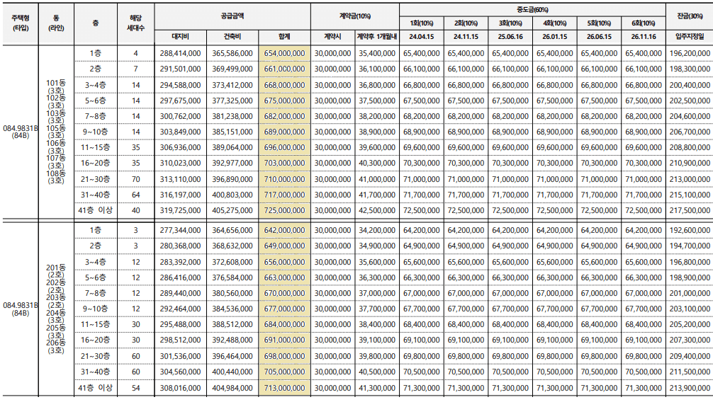 1BL 84타입은 6.3~7.2억, 2BL 84타입은 6.3~7.1억원입니다.