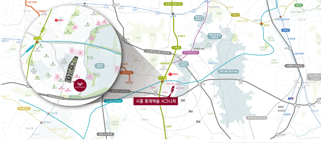 그리고 서울과 연결된 제2경인고속도로 신천IC, 수도권 제1순환고속도로 시흥IC 등이 인접해있어 수도권 진출입이 편리합니다. 단지 주변 도로는 4차선 도로로 지을 예정이며 단지 주변의 환경이 많이 개선될 것이라고 합니다.